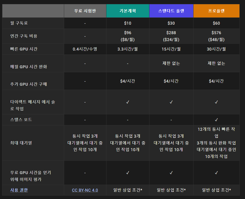 - 미드져니는 현재 유료버전을 따로 진행하고 있는데 다음과 같습니다.